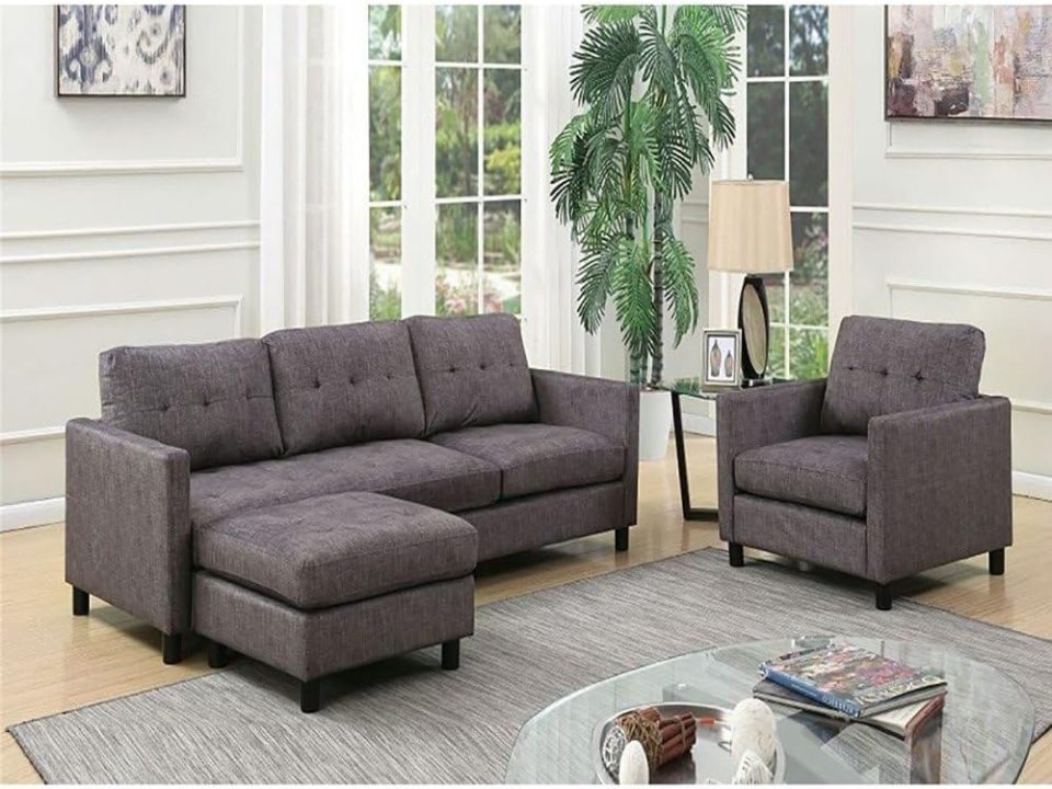 Home Mart ACME Ceasar Sectional Sofa in Gray Fabric, Luxury Sofa – Customizable Sectional Sofa for Living Room, Premium Upholstery, L-Shape Design