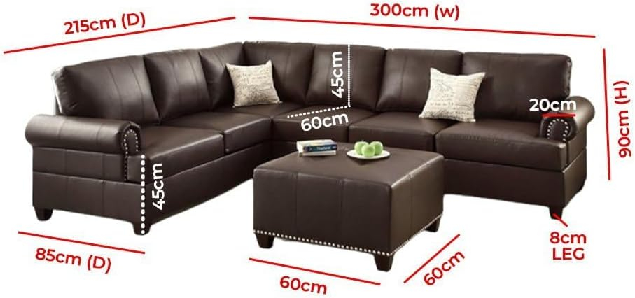 Home Mart Bailey Leather L-Shaped Corner Sofa – Customizable Sectional Sofa for Living Room, Premium Upholstery, L-Shape Design