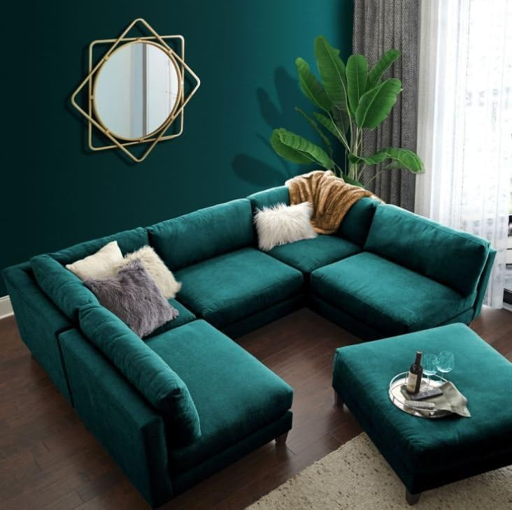 Home Mart Aurora 5-Seater U-Shape Velvet Sectional Sofa – Customizable Modular, Premium Upholstery, Modern Living Room Furniture
