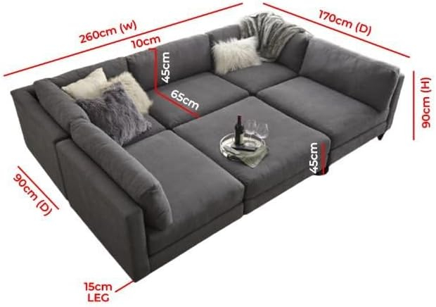 Home Mart Basinger 7-Piece Modular U-Shape Sofa Furniture – Customizable Sectional Sofa for Living Room, Premium Upholstery, L-Shape Design