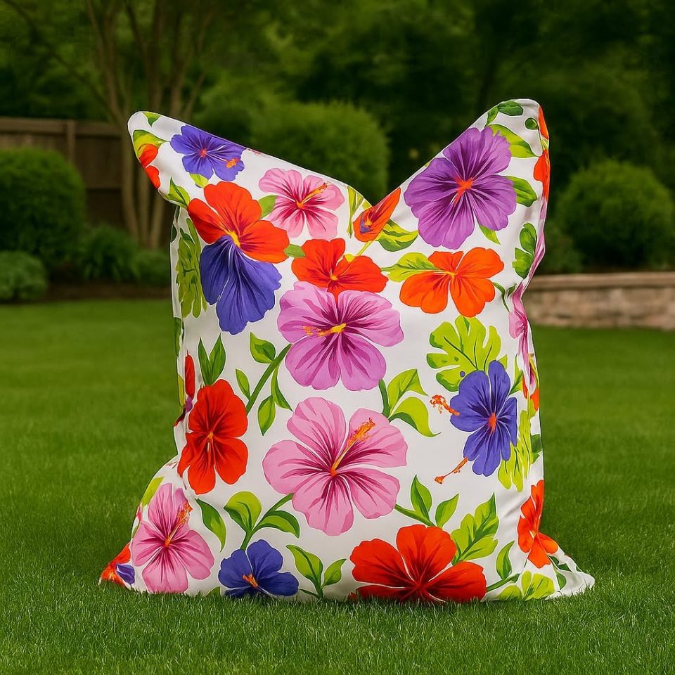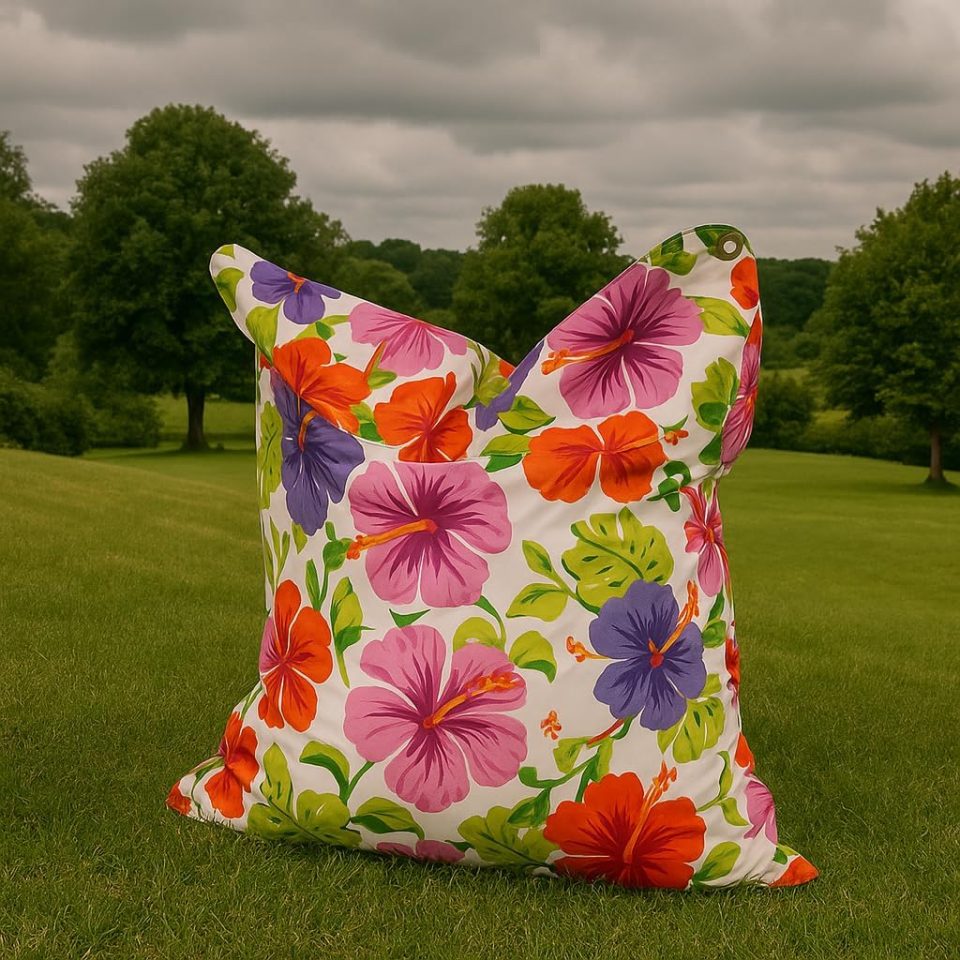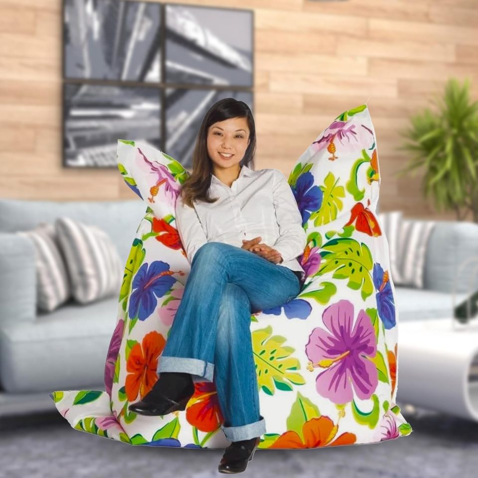 B&S Bean Bag with Polystyrene Fillings | Vibrant Hibiscus Floral Design Beanbag | Elegant & Cozy Seating Sofa Chair Bag | UV-Resistant Lounger Chair | Lightweight & Portable for Home Use