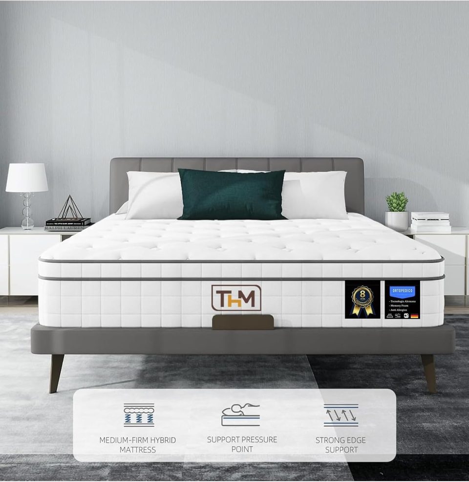 • 🛏️ Orthopedic & Back Pain Relief: Engineered as an orthopedic mattress with medium firm comfort, this spring mattress provides excellent back support, relieving pressure points and helping reduce back pain for all sleeping positions.