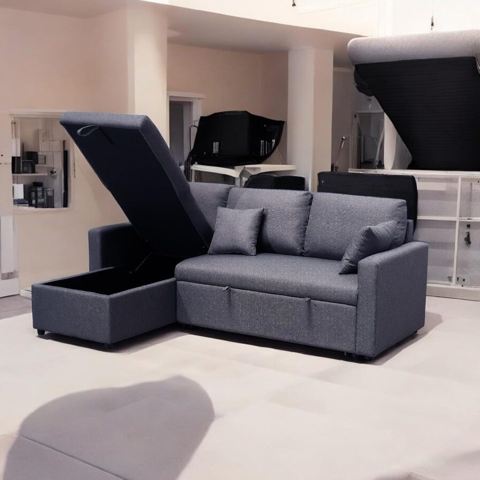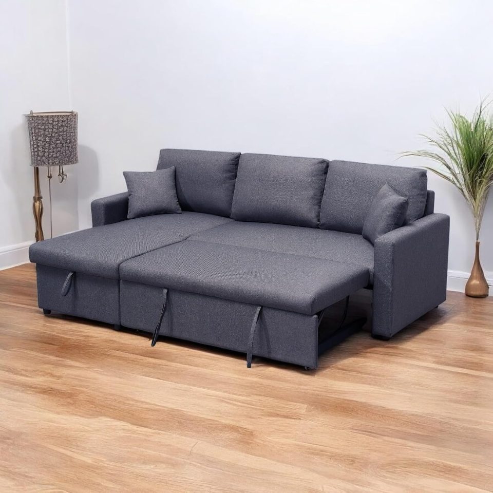 Versatile Design: This modern L-shaped sectional sofa features a chaise lounge and convertible sleeper design, offering both seating and sleeping functionality.