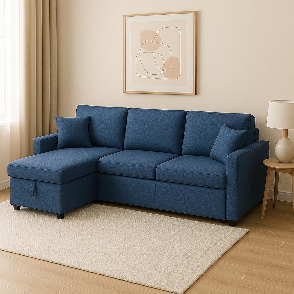 Plush Cushions, L-Shaped Layout, Convertible Design, Hidden Storage, Durable Build |