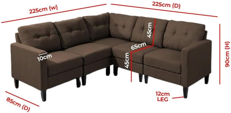 Home Mart Emmie Mid-century Modern 5-Seater Sectional Sofa Set – Customizable Sectional Sofa for Living Room, Premium Upholstery, L-Shape Design