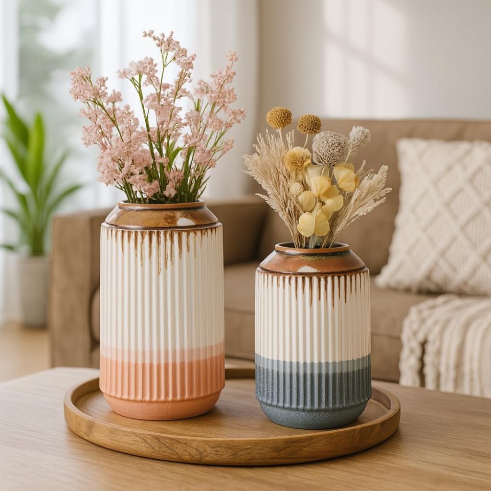✅ Versatile Decoration Option 🏡 Use them as a standalone art piece or fill them with fresh flowers, dried stems, or pampas grass. Ideal for living rooms, bedrooms, dining tables, or office desks. They complement both floral arrangements and minimalist décor styles.