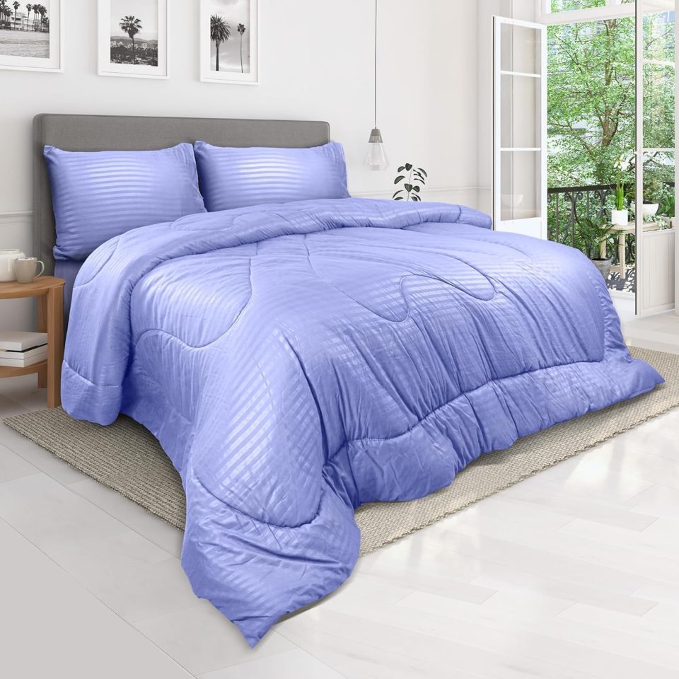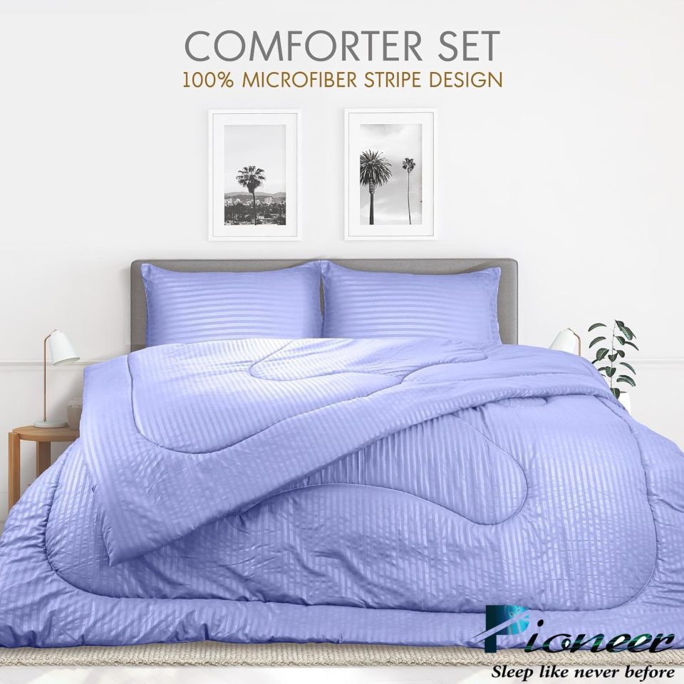 Pioneer Comforter Set with Flat Sheet & Pillow case – Ultra Soft Stripe Microfiber Fabric, Lightweight, Luxury, & Breathable Hotel Quality – All Season Fluffy (Lavender, Single : 160 x 220 cm)