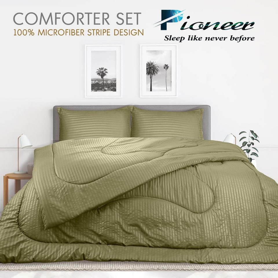 Pioneer Snore More Luxury Home Textiles Reversible Microfibre Comfortable Sleep Quilt Bedding duvet – All Season Comforters – Plush Siliconized Fiberfill (Olive, King : 240 x 260 cm, Pack of 8)