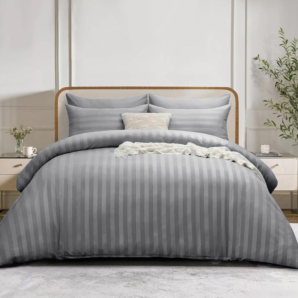 𝐌𝐎𝐃𝐄𝐑𝐍 𝐃𝐔𝐕𝐄𝐓 𝐂𝐎𝐕𝐄𝐑: This blended satin stripe duvet cover set combines soft Microfiber to bring you luxurious that stays looking and feeling excellent wash after wash.