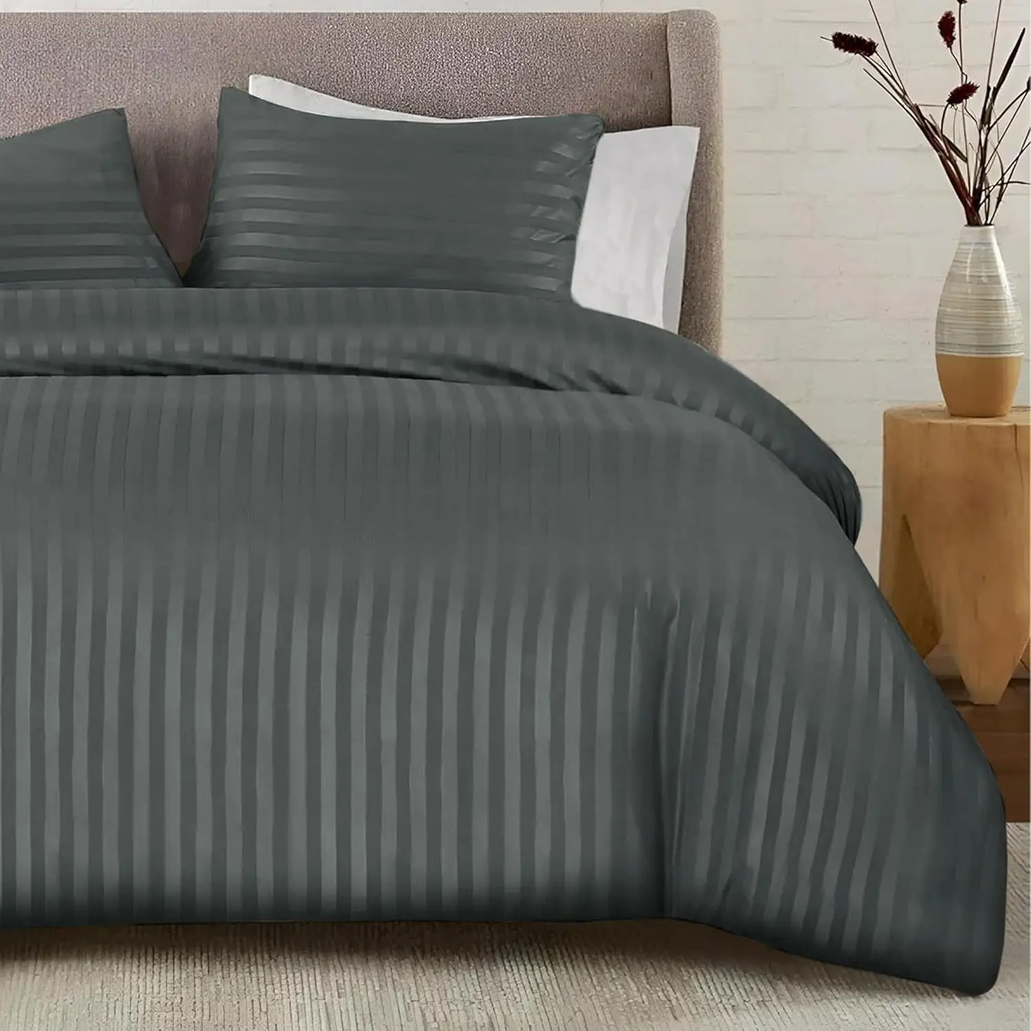 Home Mart Outlet Duvet Cover Sets Double Premium Hotel Quality Brushed Microfiber Satin Stripe Quilt Cover Set with Pillowcases Hypoallergenic Ultra Soft Microfiber (Charcoal, King – 240 x 260 cm)