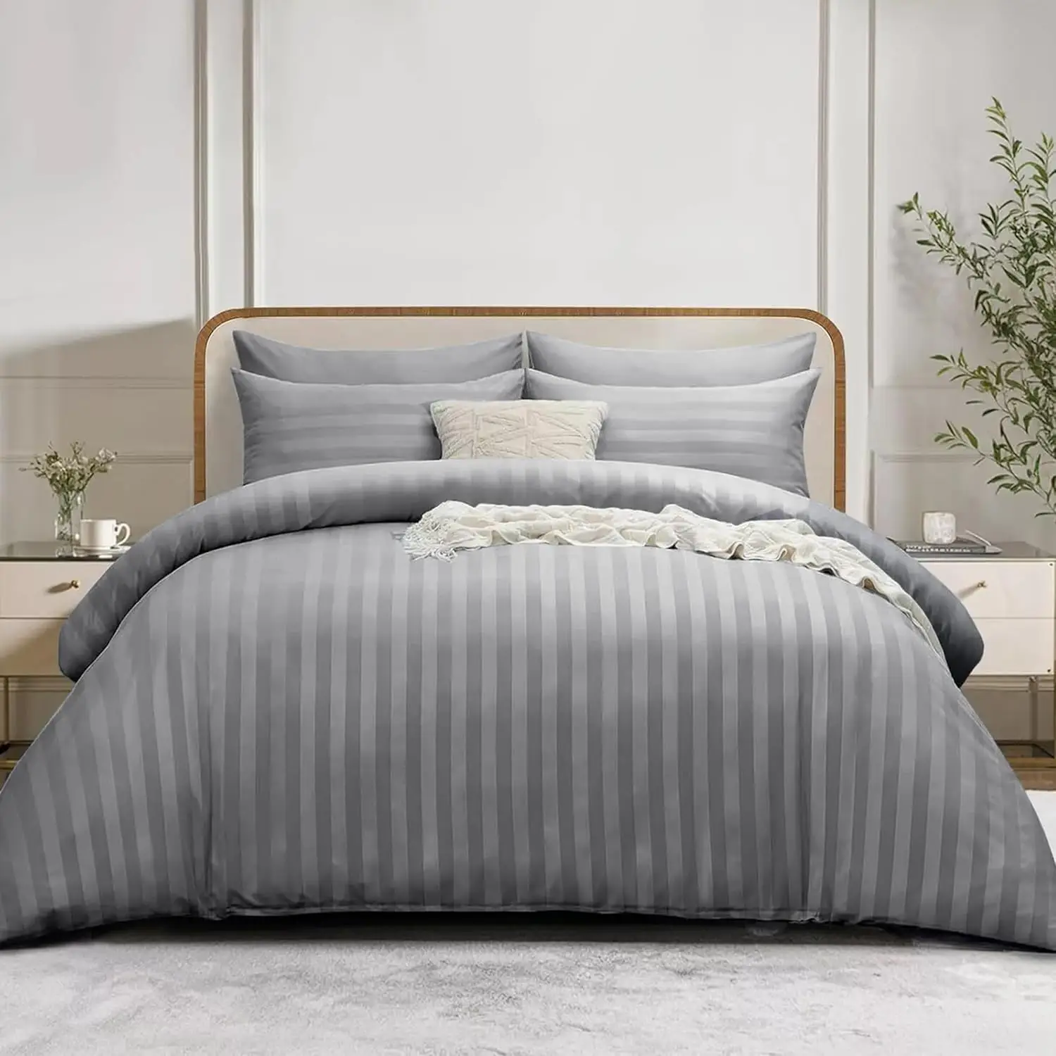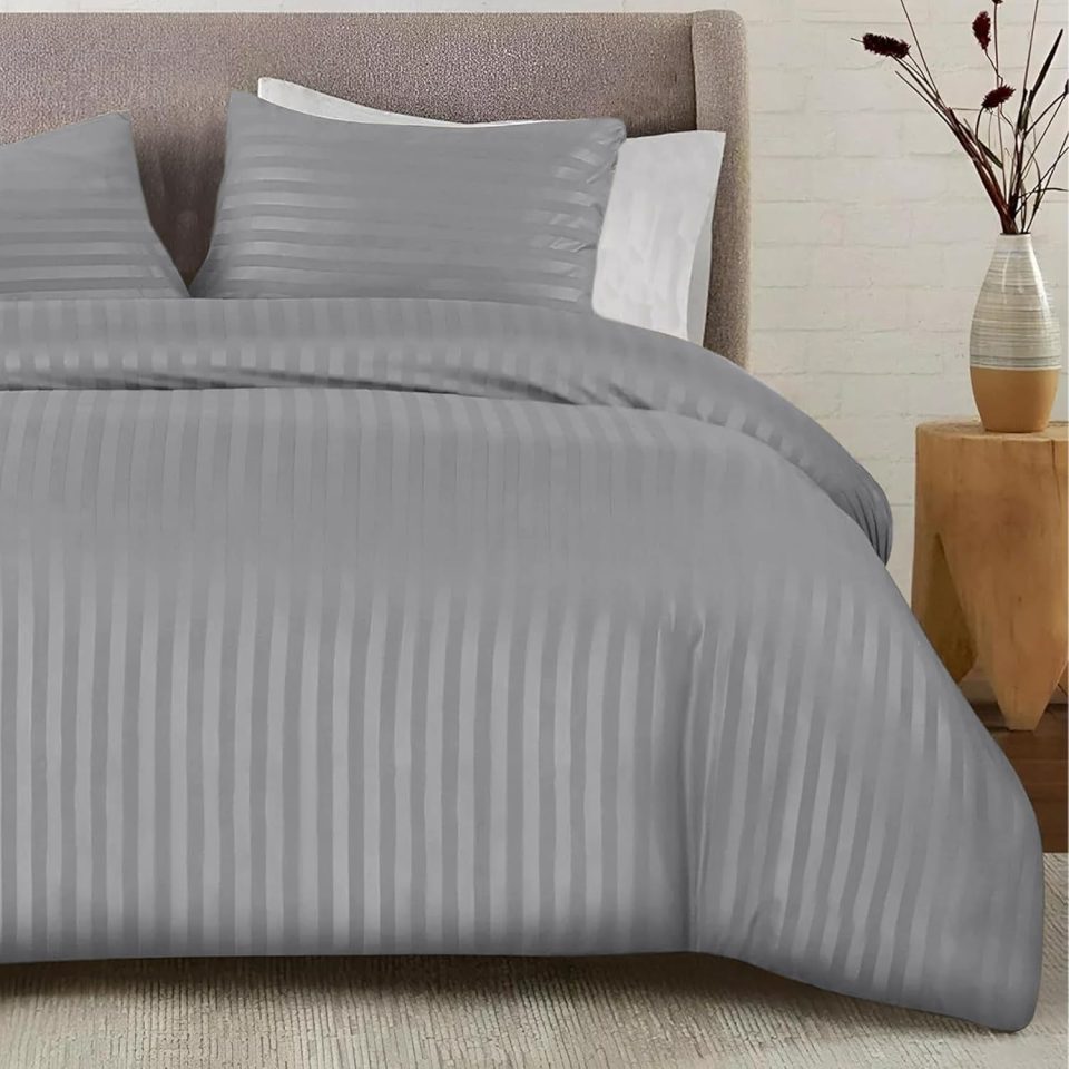 Home Mart Outlet Duvet Cover Sets Double Premium Hotel Quality Brushed Microfiber Satin Stripe Quilt Cover Set with Pillowcases Hypoallergenic Ultra Soft Microfiber (Gray, King – 240 x 260 cm)
