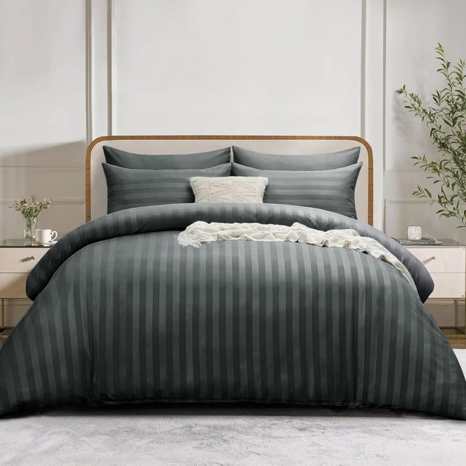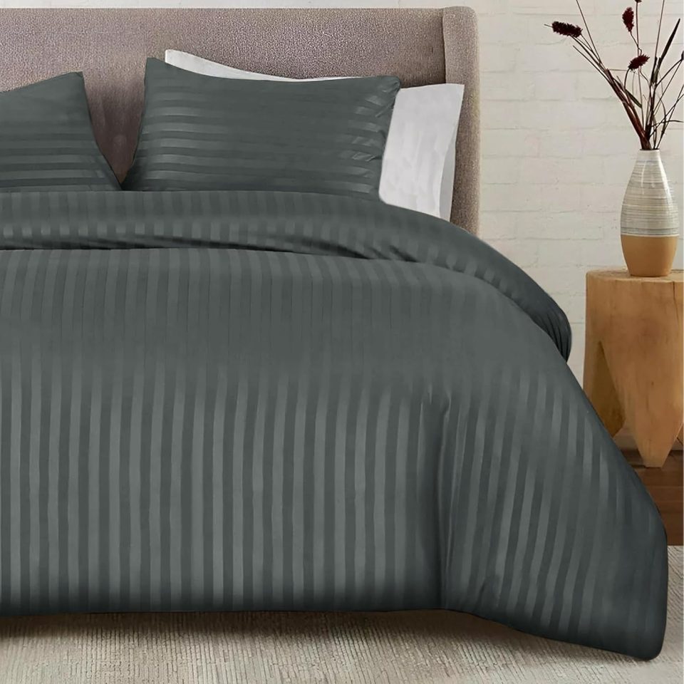 𝐌𝐎𝐃𝐄𝐑𝐍 𝐃𝐔𝐕𝐄𝐓 𝐂𝐎𝐕𝐄𝐑: This blended satin stripe duvet cover set combines soft Microfiber to bring you luxurious that stays looking and feeling excellent wash after wash.