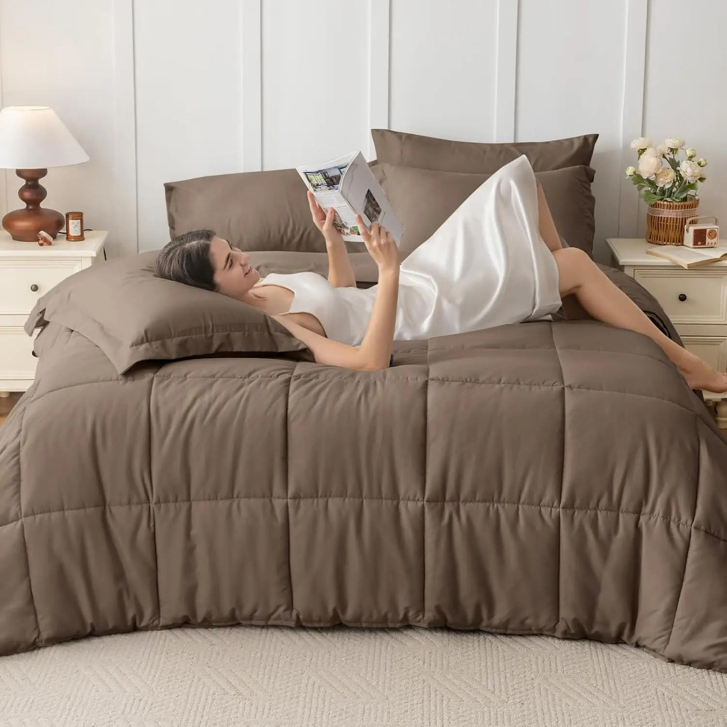 Home Mart Down Alternative 4Pcs Comforter Set Brown – Ultra Soft Microfiber Duvet with 250GSM Filling – Queen Size 220×240 cm – Lightweight, Breathable & Hypoallergenic Bedding for All Seasons