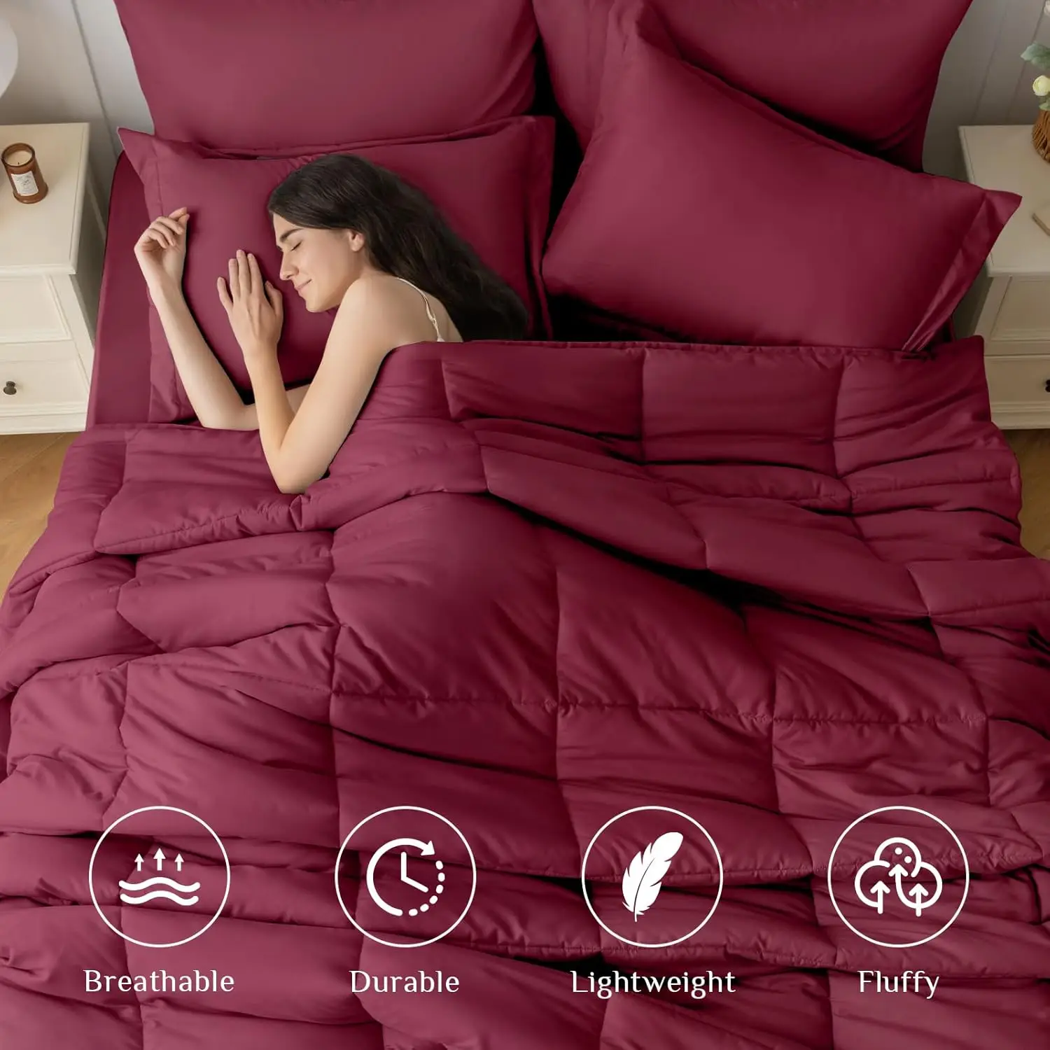 Home Mart Down Alternative 4Pcs Comforter Set Dark Red – Ultra Soft Microfiber Duvet with 250GSM Filling – Queen Size 220×240 cm – Lightweight, Breathable & Hypoallergenic Bedding for All Seasons