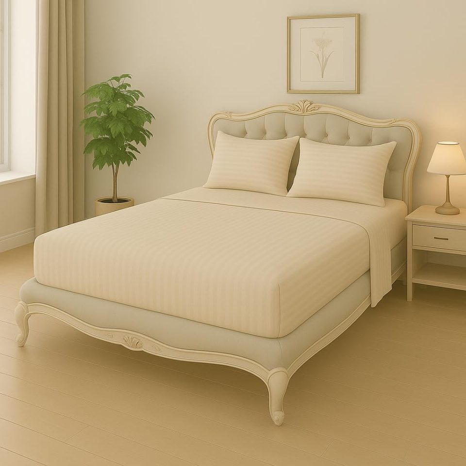 Home Mart Outlet Striped Microfiber Fitted Sheet Set – King 180×200 cm – Cream Color – 1 Fitted Sheet & 2 Pillowcases (50×75 cm) – Deep Pocket, Soft, Durable, Wrinkle-Resistant Bedding Set