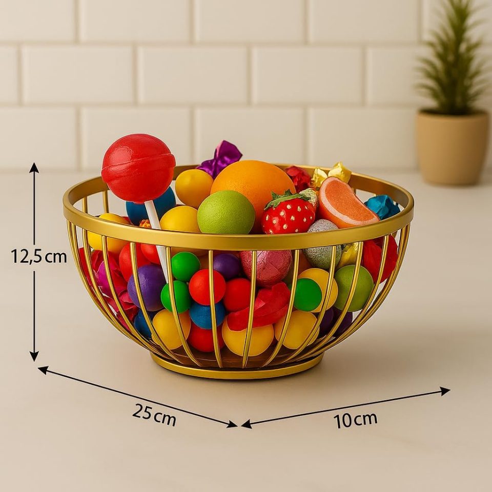 B&S Golden Wire Fruit Basket 26266cm – Elegant Metal Storage Basket for Fruits, Vegetables, and Decorative Items – Durable, Stylish Home & Kitchen Organizer – Modern Gold Finish