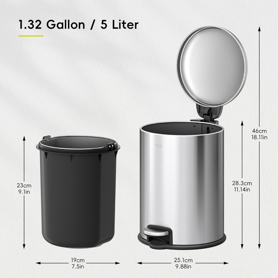 REMOVABLE INNER BUCKET: The built-in bag stabilizer ring keeps your trash bag securely in place without messy overhangs, making waste disposal tidy and effortless.
