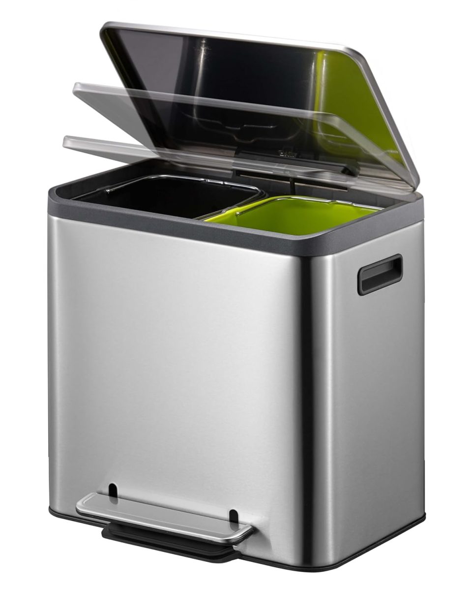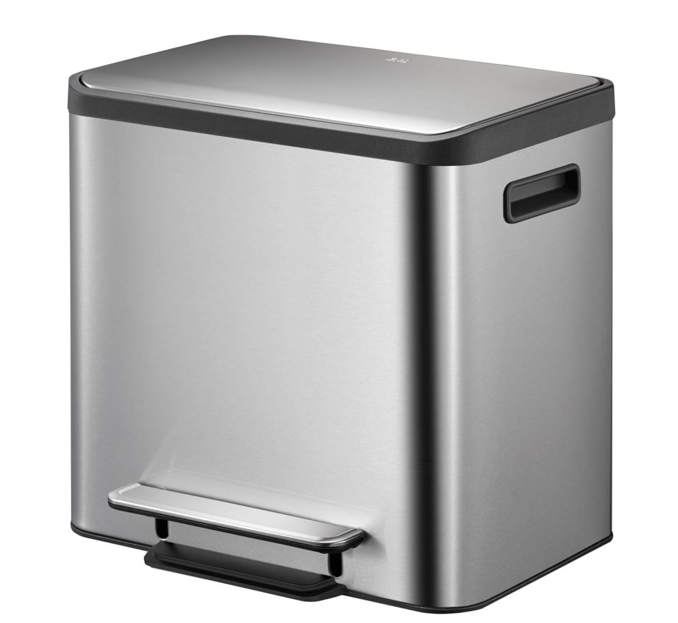 EK9129MT – 30L+30L EKO brand ECO Casa II 15L+15L Recycling Bin, stainless steel fingerprint resistant, soft close, double PP liners.