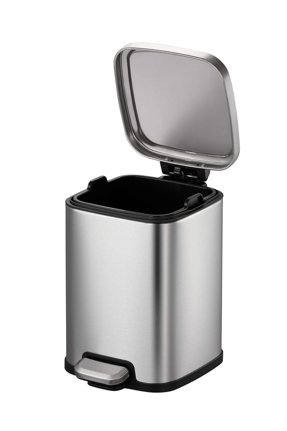 EK9384MT-6L “EKO” BRAND 6LSquare Step Bin, Fingeprint-resistant Brushed Stainless Steel, Soft close Lid, Black PP Liner