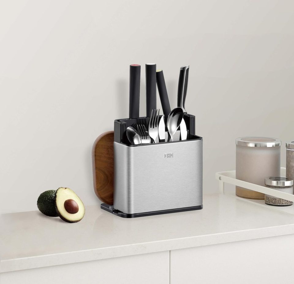 EK8628 EKO Brand, Kitchen utensils storage stand, fingerprint resistant brushed stainless+ABS