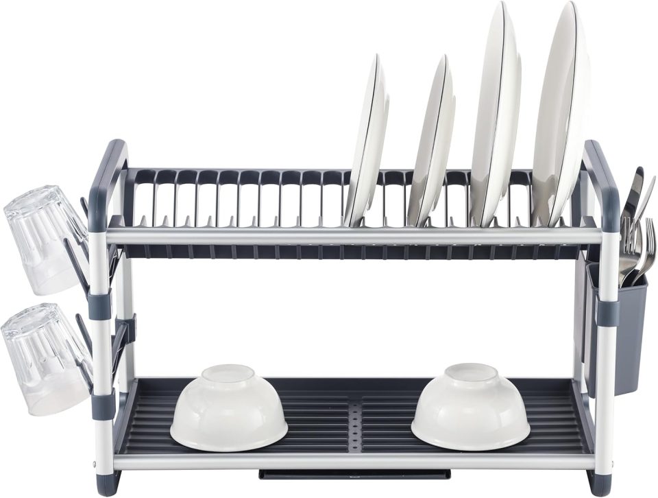 Aluminum Dish Rack Removable draining tray Double layer PP+ABS L609*W267*H342-PA-2302A2
