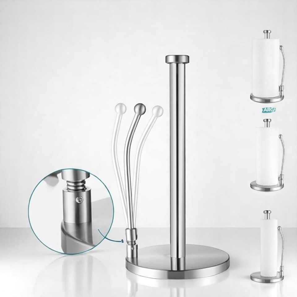 Stainless Steel Kitchen Roll Holder with Spring Arm, Free-Standing