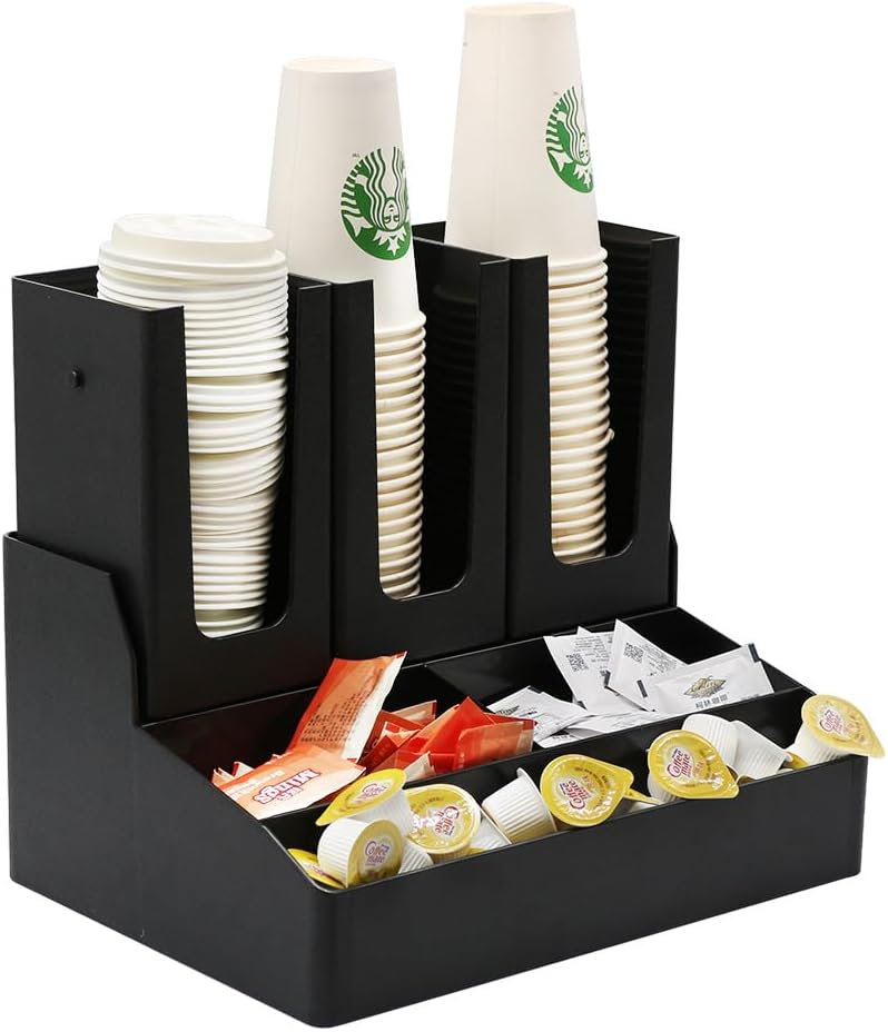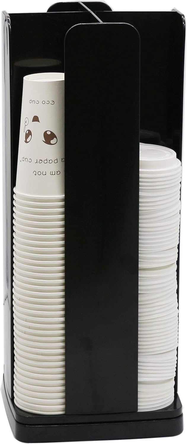 Coffee Cup Dispenser Lid Holder Beverage Station Organizer Spinning Caddy, Black 21*21*49 JD-86217