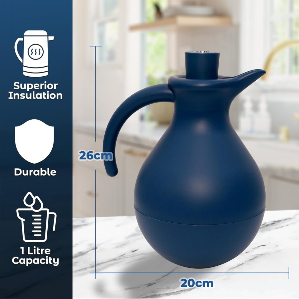 B&S Deep Blue Vacuum Flask | 1L Thermos Flask Bottle | Insulated Hot and Cold Water Bottle | Double Wall Tumbler Flask | Durable Flask Water Bottle for Travel & Daily Use | Leak-Proof with Handle