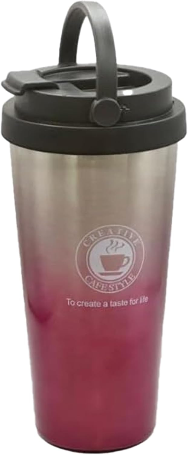 B&S Stainless Steel Tumbler Flask Bottle with Plastic Lid | Vacuum Insulated Beverage Bottle | Leak-Proof Insulated Double Wall | 12 Hours Hot and Cold Water Bottle | Vacuum Flask 450ML, Pink