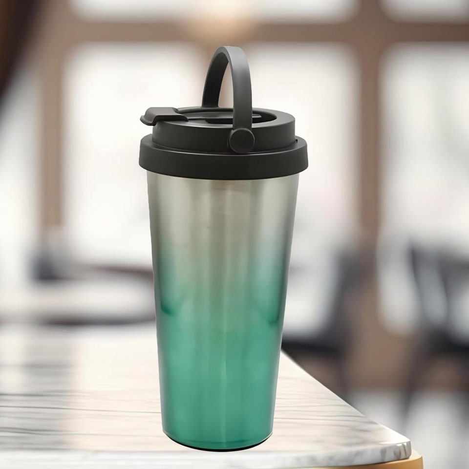 B&S Stainless Steel Tumbler Flask Bottle with Plastic Lid | Vacuum Insulated Beverage Bottle | Leak-Proof Insulated Double Wall | 12 Hours Hot and Cold Water Bottle | Vacuum Flask 450ML (Green)