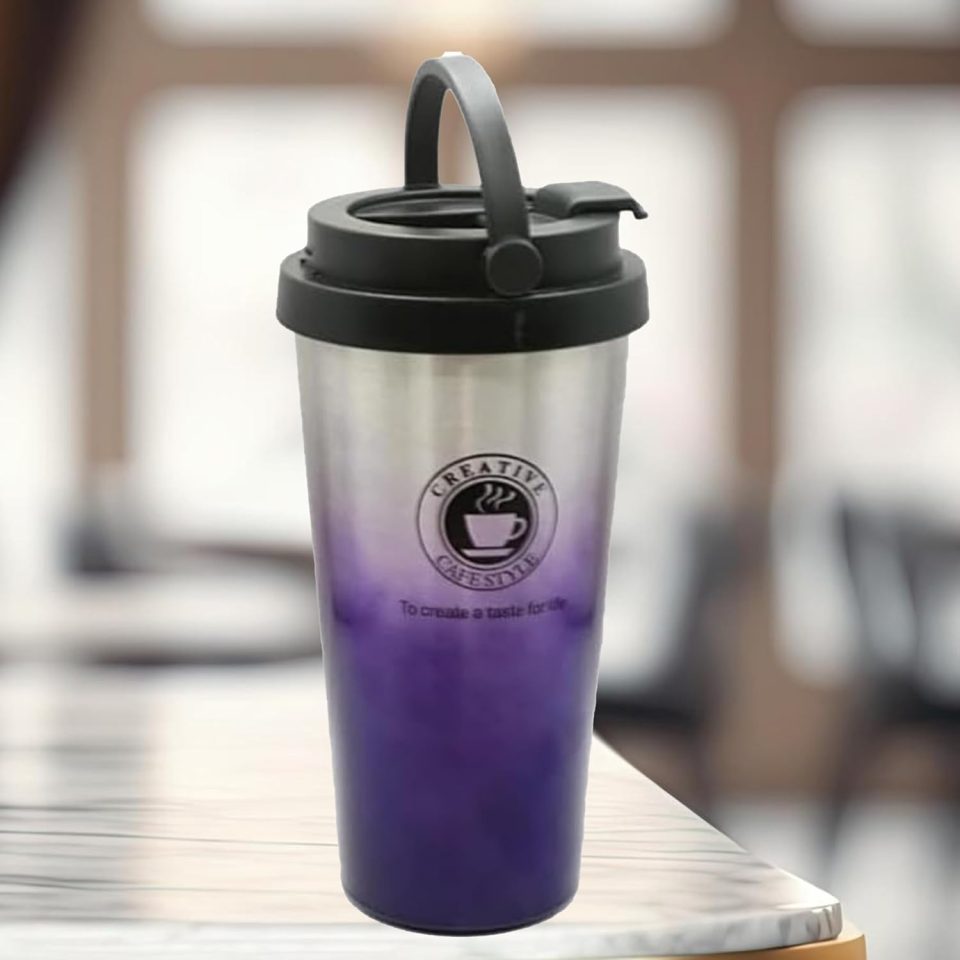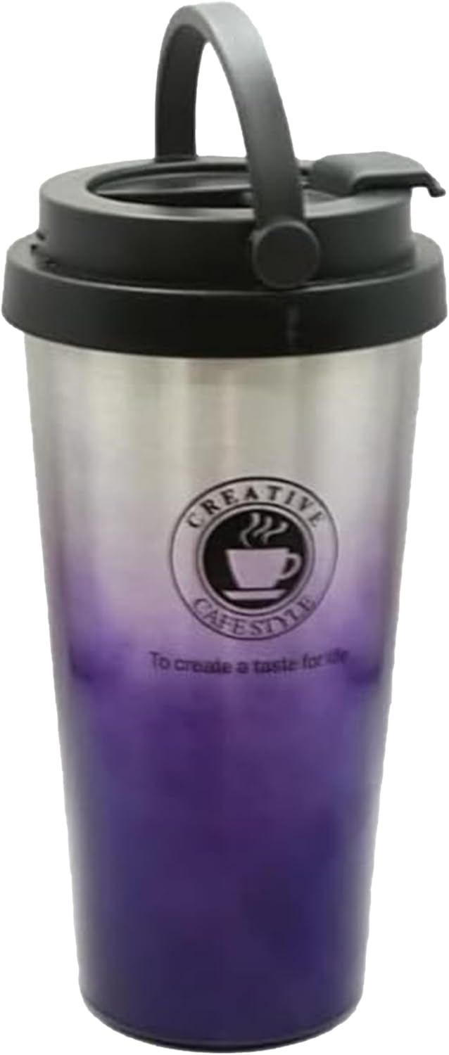 B&S Stainless Steel Tumbler Flask Bottle with Plastic Lid | Vacuum Insulated Beverage Bottle | Leak-Proof Insulated Double Wall | 12 Hours Hot and Cold Water Bottle | Vacuum Flask 450ML (Purple)