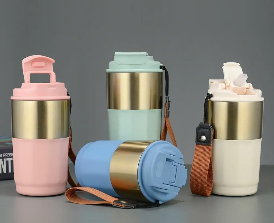 B&S Vacuum Insulated Beverage Bottle | Tumbler Flask Bottle with Strap | 304 Stainless Steel | Leak-Proof Insulated Double Wall | 8 Hours Hot and 12 Hours Cold Water Bottle | Vacuum Flask 420ML