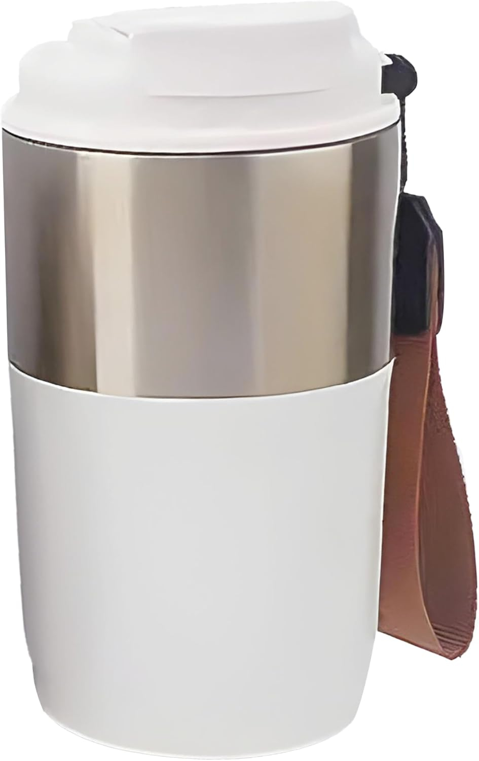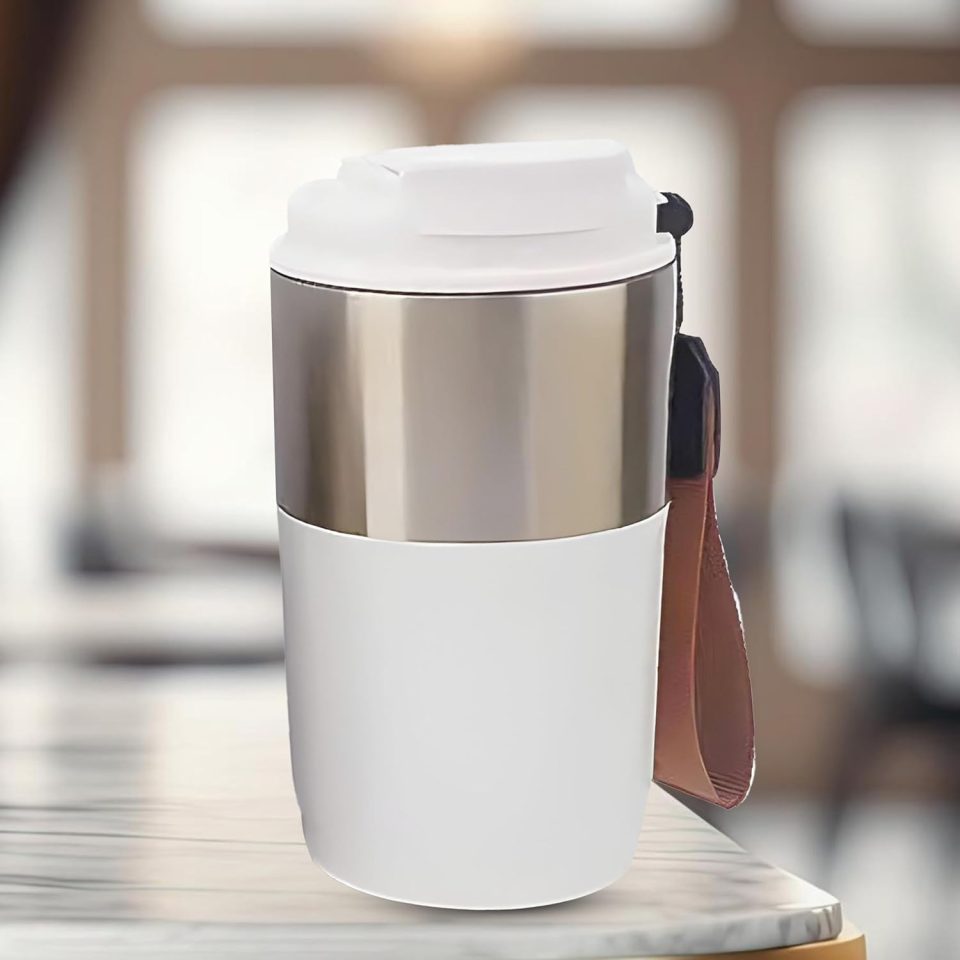 B&S Vacuum Insulated Beverage Bottle | Tumbler Flask Bottle with Strap | 304 Stainless Steel | Leak-Proof Insulated Double Wall | 12 Hours Hot and Cold Water Bottle | Vacuum Flask 420ML (White)