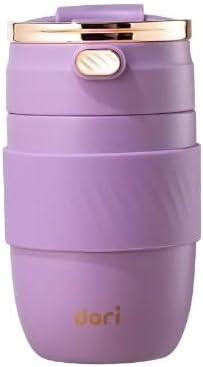 vacuum insulated coffee mug double wall w/Portable Lid w/straw,BPA Free,Insulated for Hot&Cold Drinks 18/8 Stainless Steel Cup 380ML Rapid Lock/Smooth 8 Hours Hot /20 Hours Cold Colours: purple