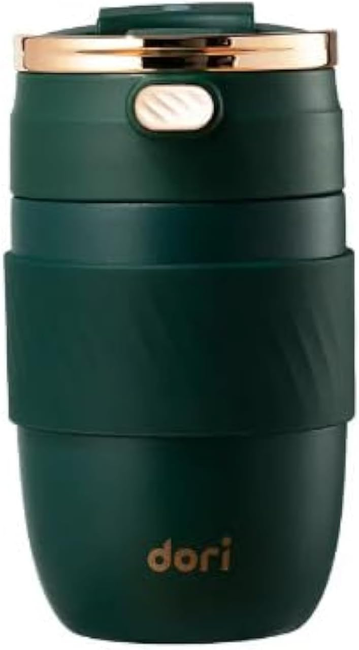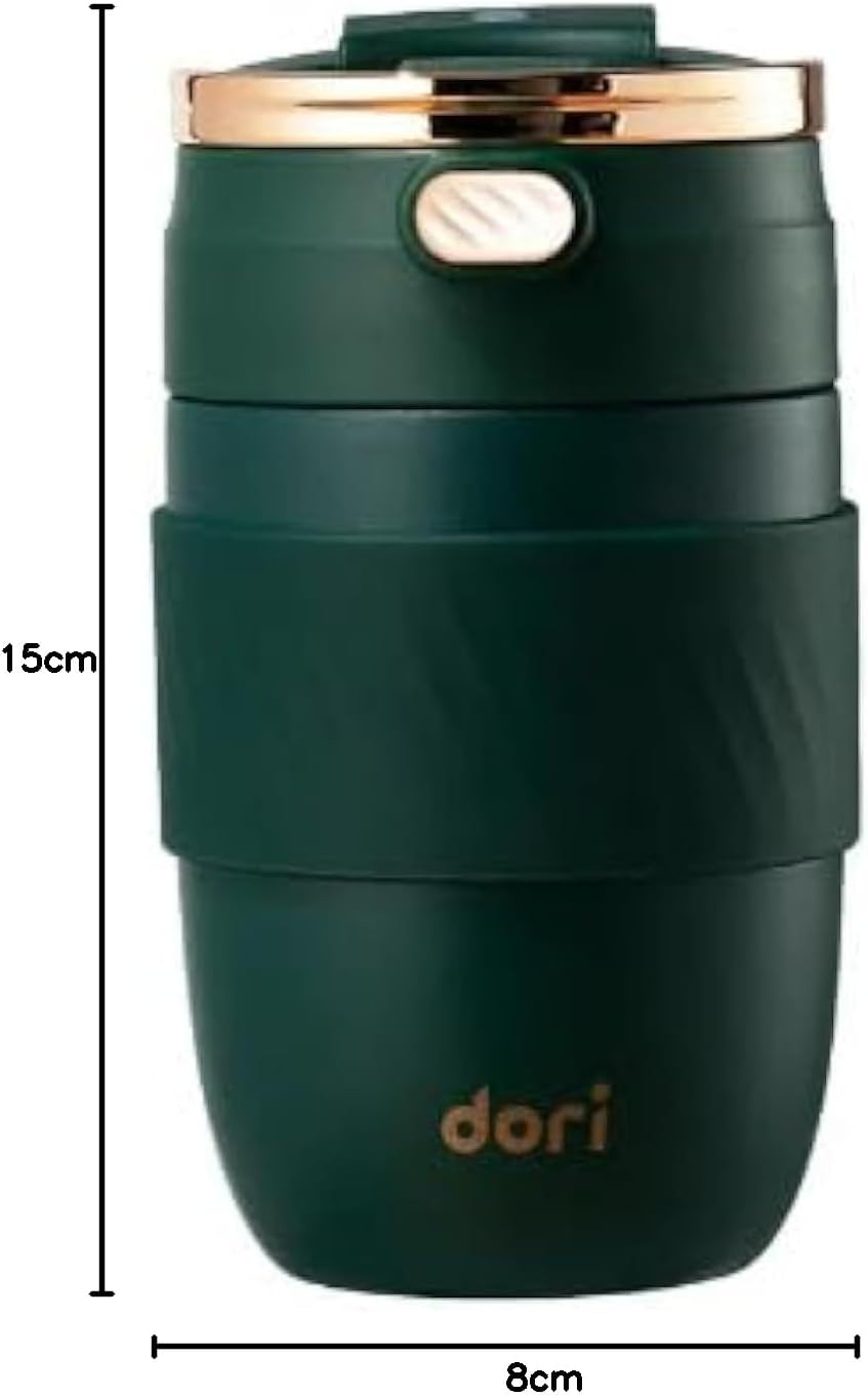 vacuum insulated coffee mug double wall w/Portable Lid w/straw,BPA Free,Insulated for Hot&Cold Drinks 18/8 Stainless Steel Cup 380ML Rapid Lock/Smooth 8 Hours Hot /20 Hours Cold Colours: green