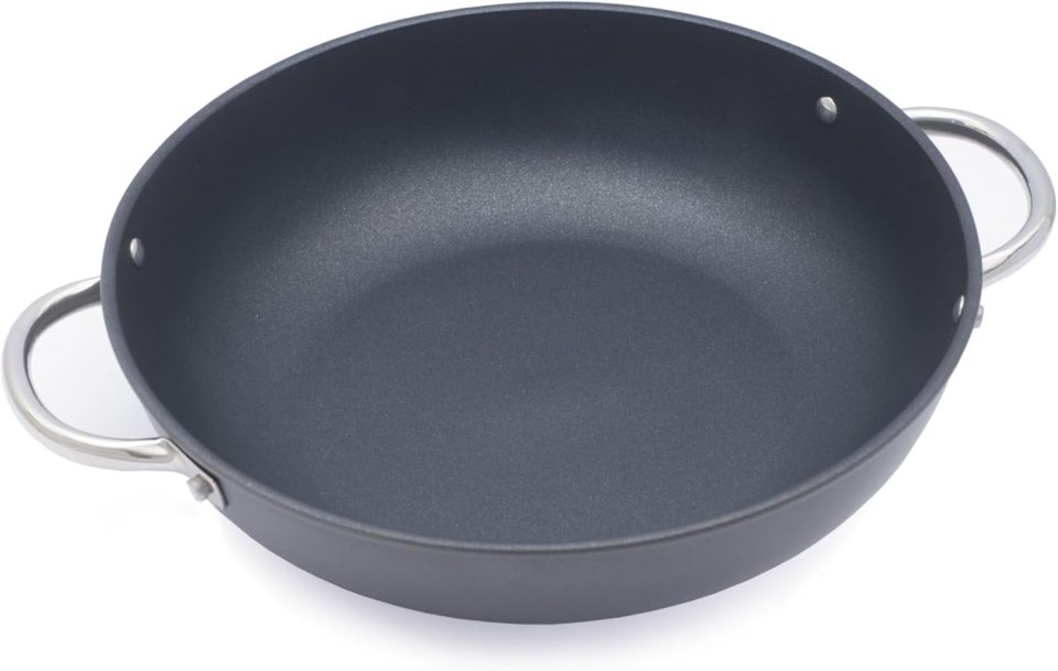 NON-STICK PAN Our non-stick pans are equipped with an innovative non-stick system that is completely free of PFOA and nickel to ensure safety and health when preparing food. With two heat resistant 18/10 steel handles with 2 rivets, it is ideal for making your food comfortable.