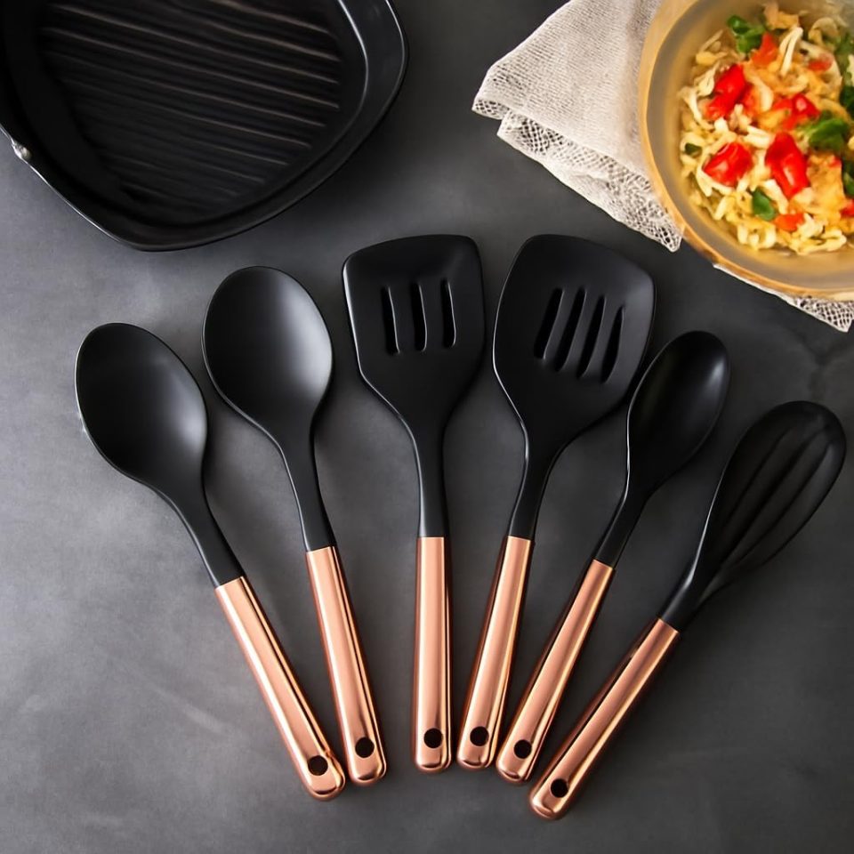 ✅ Complete 7-Piece Set – 🥄 Includes all your kitchen essentials: Slotted Turner, Solid Spoon, Slotted Spoon, Soup Ladle, Pasta Server, Skimmer & Cooking Spatula – perfect for everyday cooking.