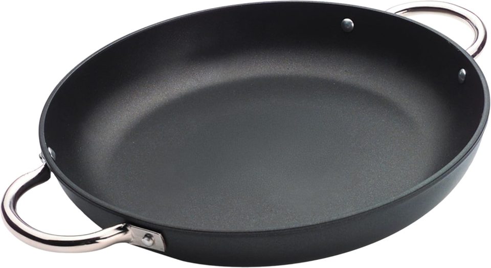 Bright Stone OP98RI/32TP0 Risoli Professional Nonstick Paella Casserole Pan – 32cm, 2.8L, Die-Cast Aluminum with Heat-Insulating Handles, Oven Safe