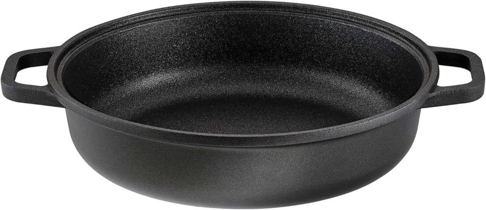 B&S Saucepan without Lid | Non-Stick Frying Pan | Die-Cast Aluminum Pan with Cast Iron Handles | Dishwasher Safe and Oven Safe | Durable Eldiamant Coating, 2L 3L 4.5L Capacity (28cm)