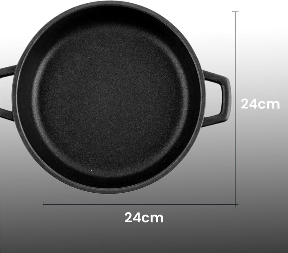 B&S Saucepan without Lid | Non-Stick Frying Pan | Die-Cast Aluminum Pan with Cast Iron Handles | Dishwasher Safe and Oven Safe | Durable Eldiamant Coating, 2L 3L 4.5L Capacity (24cm)
