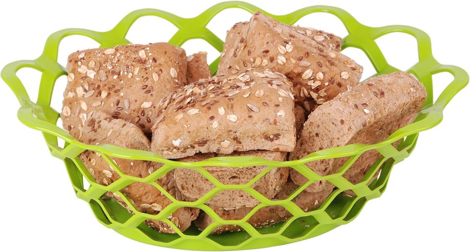 Mintra Home Plastic Bread Or Fruit Serving Oval Basket, Storage Basket, Food Basket (Green) – For Kitchen Countertop and Dining Table – Perfect For Picnic