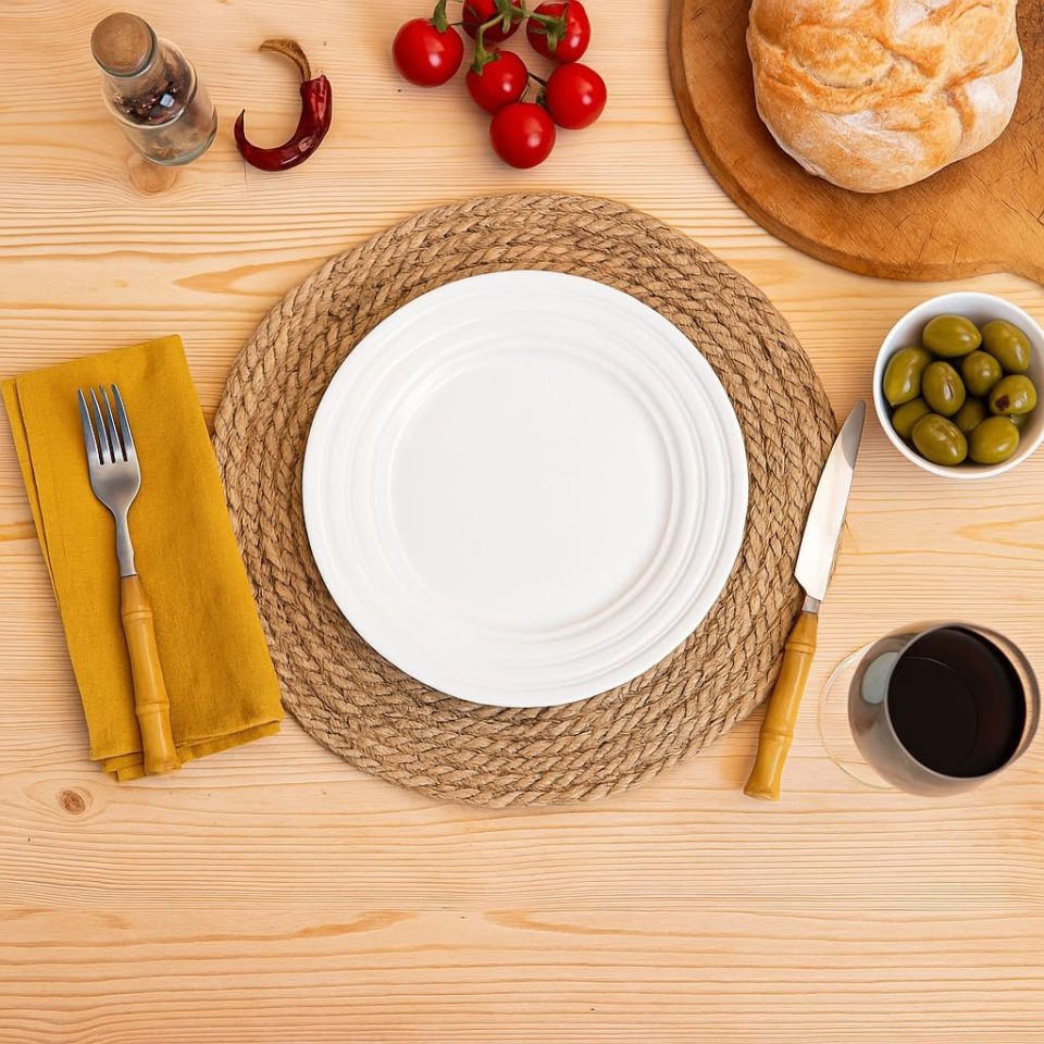 🌀 Elegant Embossed Design – Classic white plates with a beautiful textured finish to enhance any table setting, from breakfast nooks to formal dining setups.