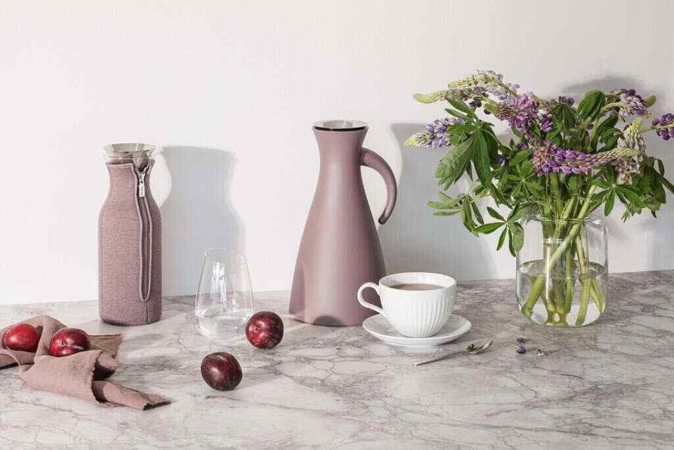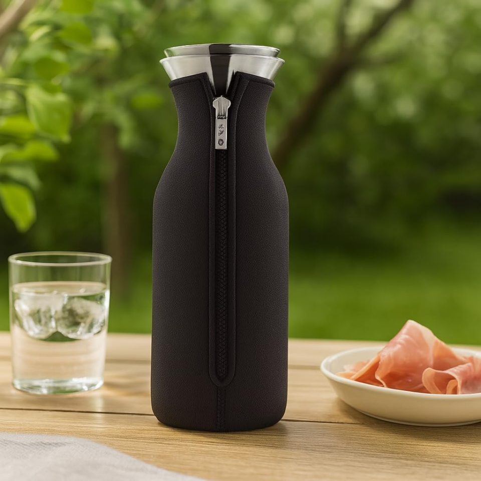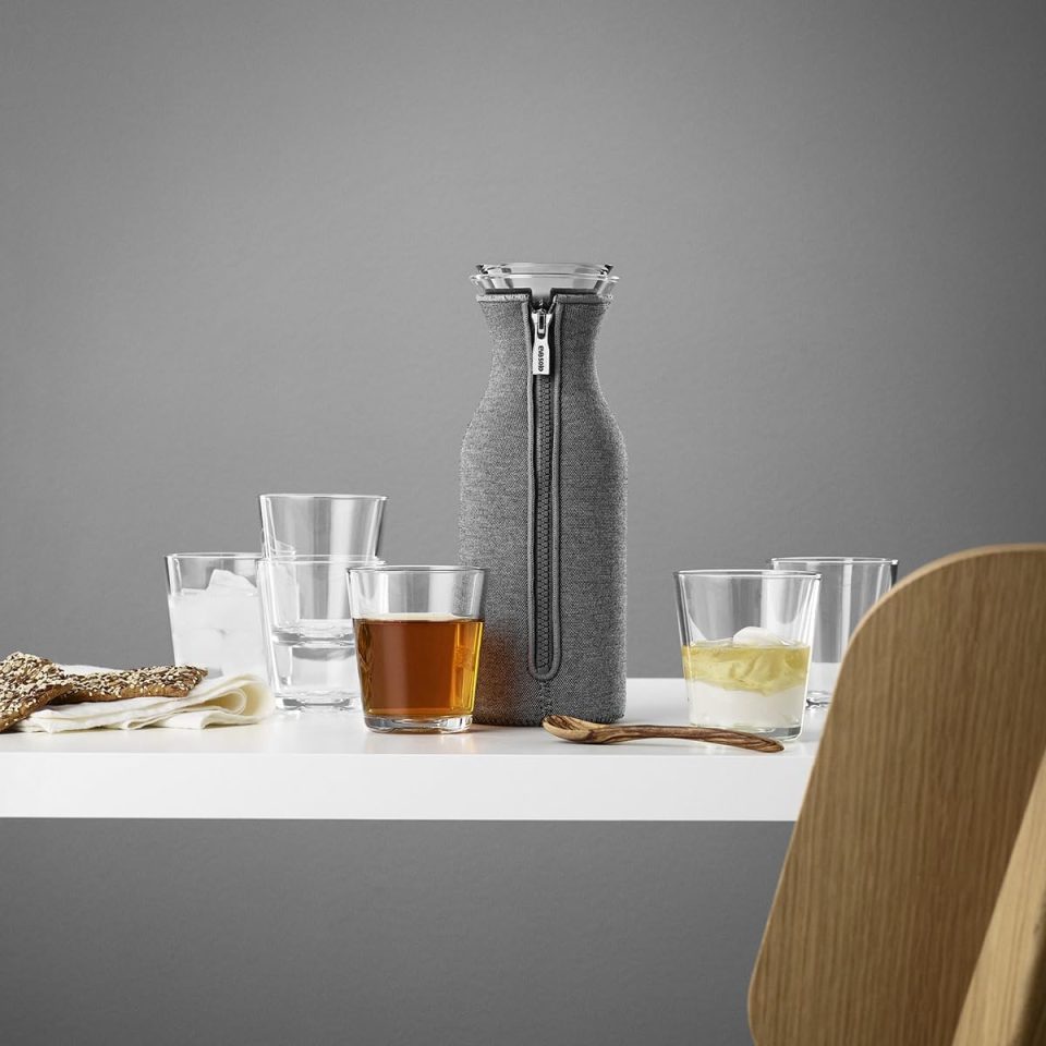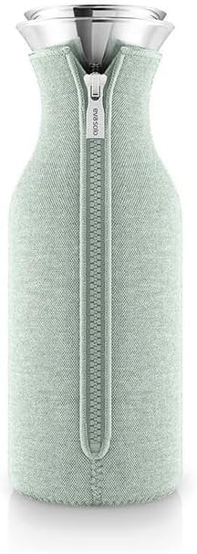 B&S Eva Solo Fridge Carafe 1.0L with Neoprene Zip Cover – Porcelain Blue – Glass Water Pitcher with Stainless Steel Lid – Ideal for Cold Beverages – Stylish & Durable Kitchen Accessory (Sage woven)