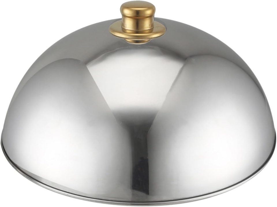 Stainless Steel Dome Cake Stand with Lid, 12.5 inches, Golden Handle, 320x320x175mm