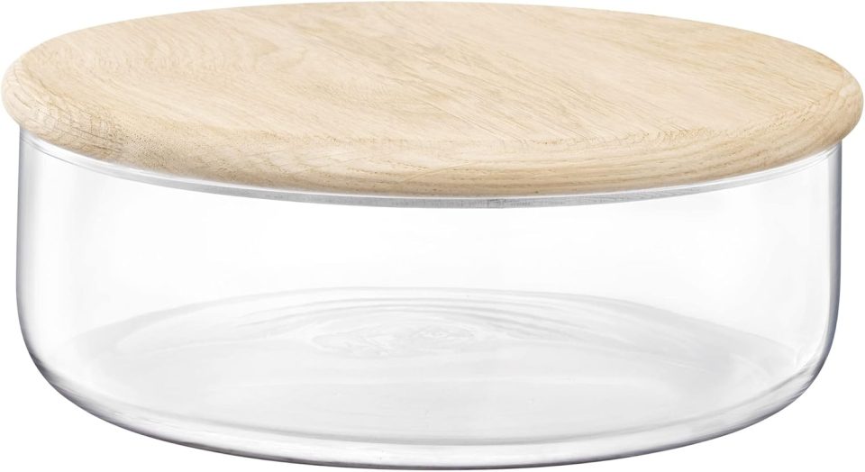 LSA International Dine Bowl/Container & Oak Lid Ø26.5cm H10cm| 1 Unit | Mouthblown & Handmade Glass | Hand Planed Wood | DI66