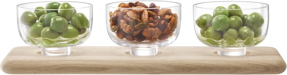 LSA International SZ62 Serve Arch Trio Bowl Set & Oak Base L33 cm Clear *