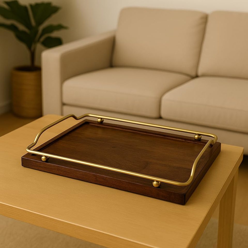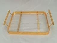 Elegant Design: Rectangular golden metal and clear acrylic trays with handles.