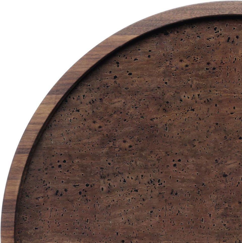 A modern LSA International tray, featuring a practical cork inlay, the solid walnut tray and the handles are cut out under the tray for a smart finish