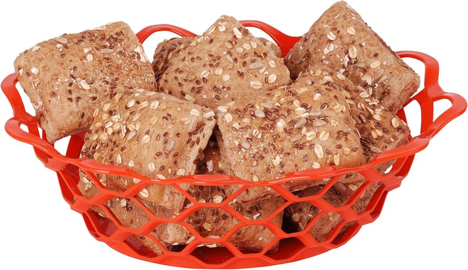 Mintra Home Plastic Bread Or Fruit Serving Oval Basket, Storage Basket, Food Basket (Orange) – For Kitchen Countertop and Dining Table – Perfect For Picnic
