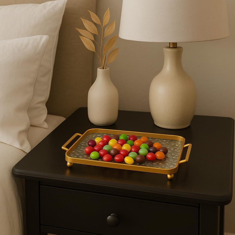 🍰 Multi-Purpose Utility Serve snacks, desserts, drinks, or use as a stylish display tray for perfumes, candles, or decorative accents.